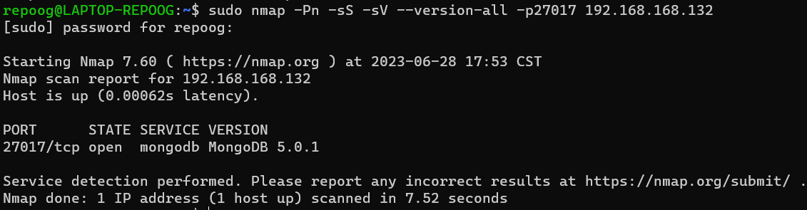 朋友反馈一个问题,说使用Nmap扫描MongoDB服务时对于6.0以上的版本默认无法识别到服务版本信息。