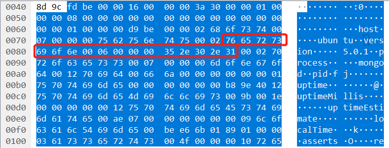 根据6.0版本的OP_MSG格式,可以得知上图中的十六进制字符串的构成: